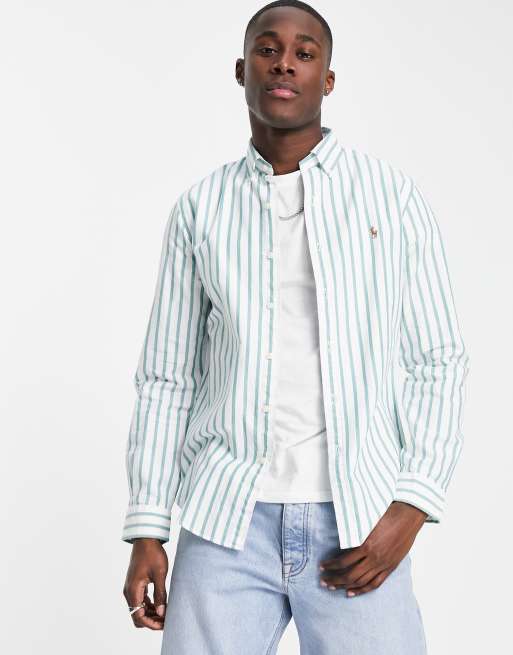 Polo Ralph Lauren icon logo slim fit stripe oxford shirt in green/white | ASOS