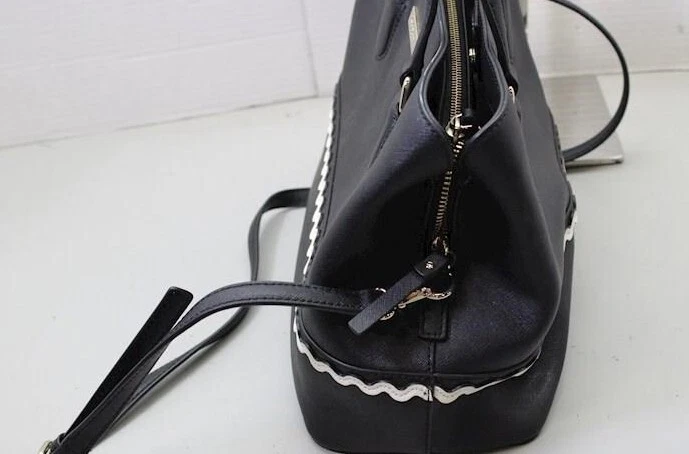 Kate Spade Black Leather w/White ruffle Detail Handbag Excellent condition $95 | eBay