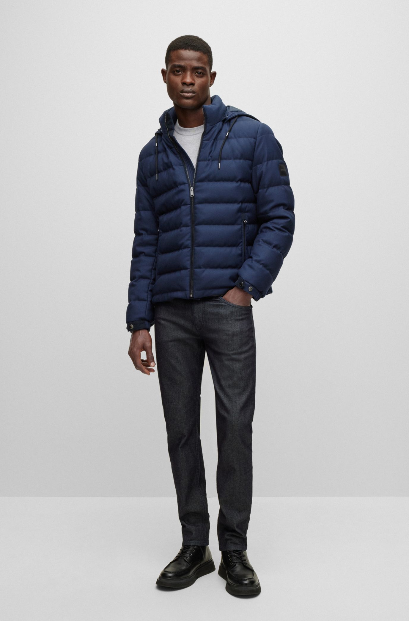 BOSS - Hooded down jacket in pure-wool twill