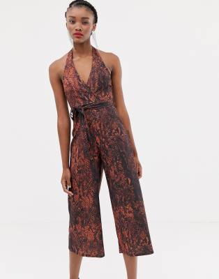 halterneck jumpsuit in snake print | ASOS