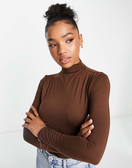 Urban Revivo long sleeve polo neck top in brown | ASOS