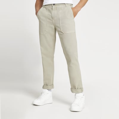 Beige slim fit worker trousers | River